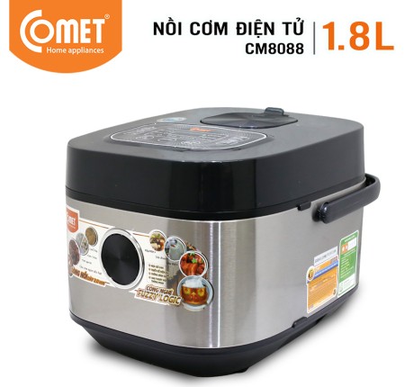 - Nồi cơm điện tử Comet CM8088 thiết kế sang trọng và hiện đại mang đến cho gia đình bạn những bữa cơm đầm ấm.