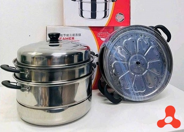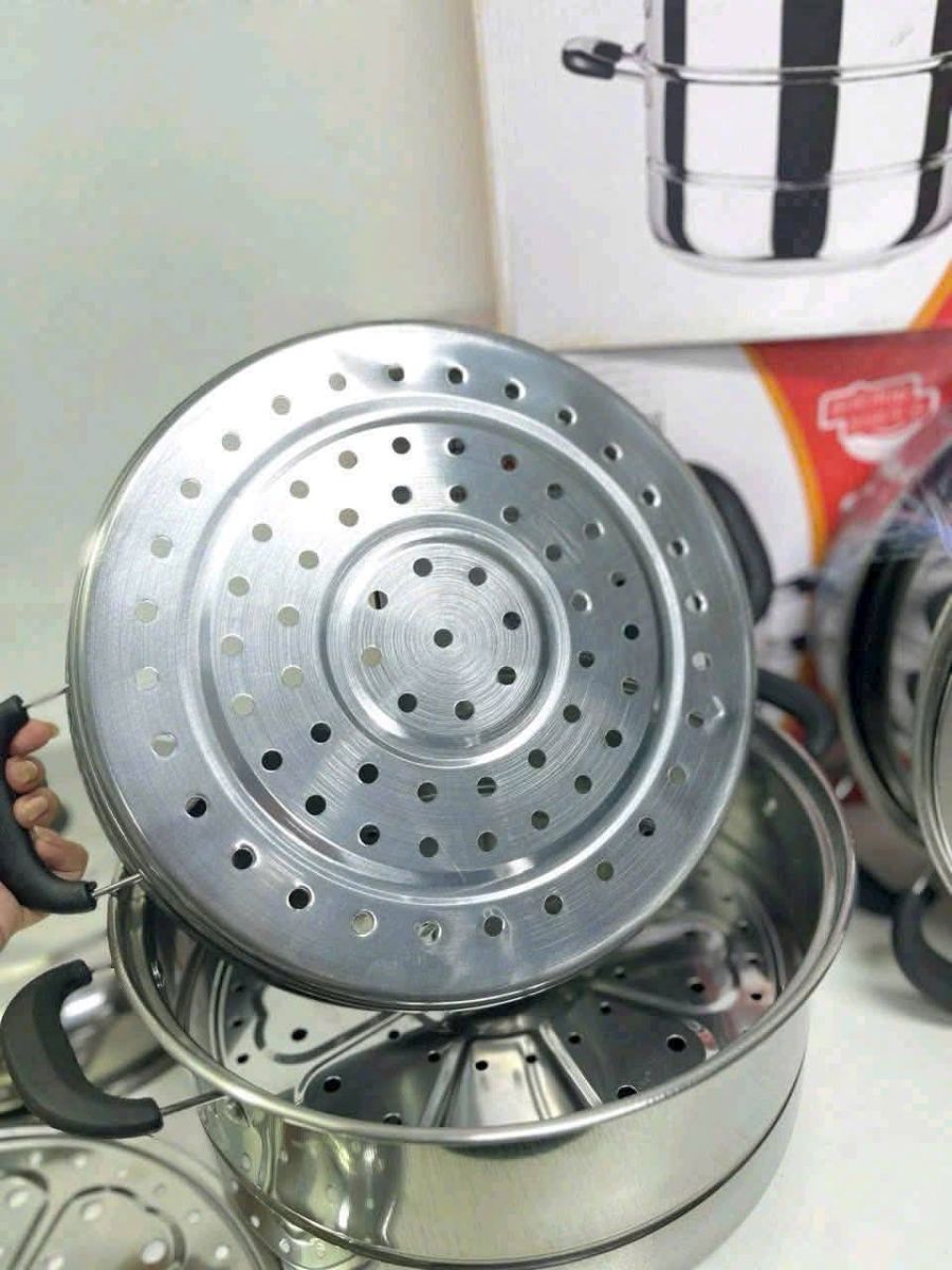 Thiết kế 3 tầng: Giúp bạn hấp nhiều loại thực phẩm cùng lúc mà không bị lẫn mùi, tối ưu không gian bếp. Mỗi tầng đều được đục lỗ thoáng khí, cho hơi nước lan tỏa đều, làm chín thực phẩm nhanh và đều.