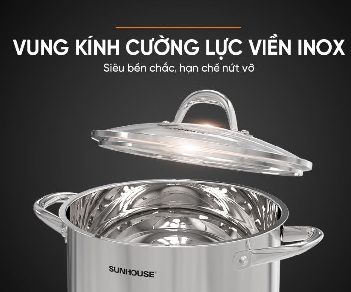 Nồi SHG301-32 3 đáy của SUNHOUSE được sản xuất từ inox an toàn với sức khỏe, với độ bền cao và thiết kế sang trọng. Nồi được trang bị vung kính cường lực bền bỉ. Loạt nồi này có nhiều kích cỡ khác nhau, mang đến sự đa dạng trong việc chọn lựa cho bạn.
