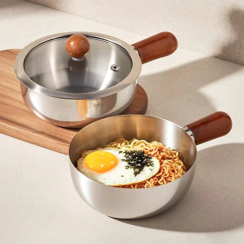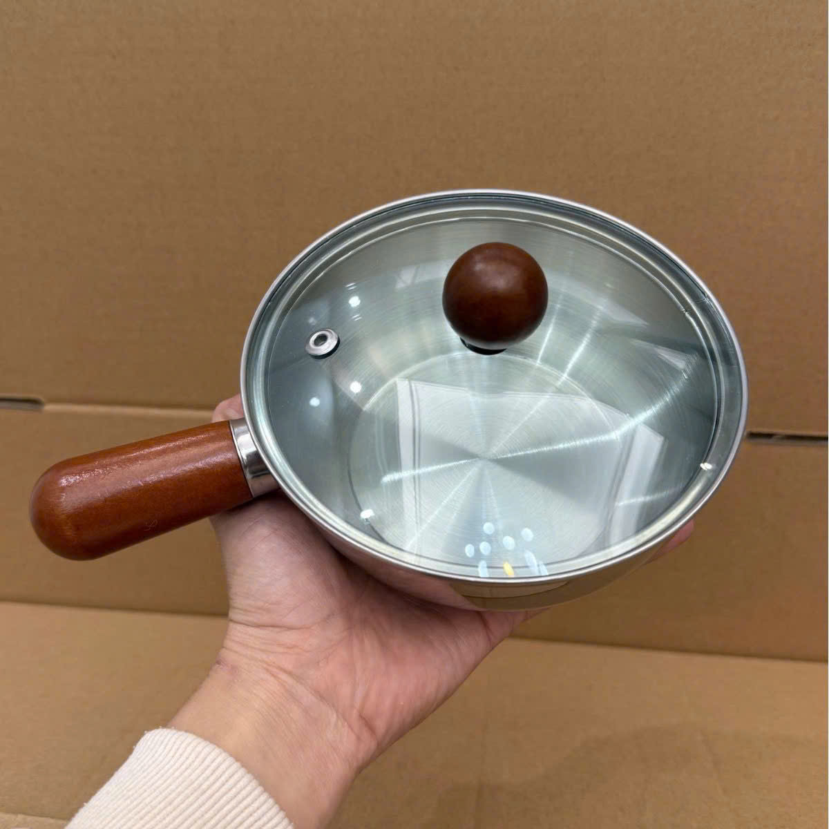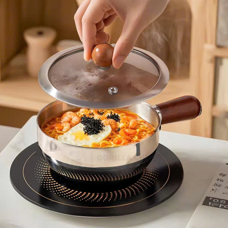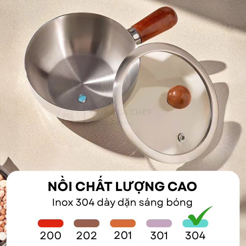 NỒI INOX 304 CÁN GỖ 14CM GORILLA CHEF NẮP KÍNH (T100)