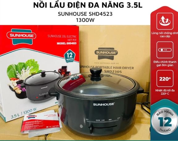 NỒI LẨU ĐIỆN ĐA NĂNG 3,5L SUNHOUSE SHD4523
