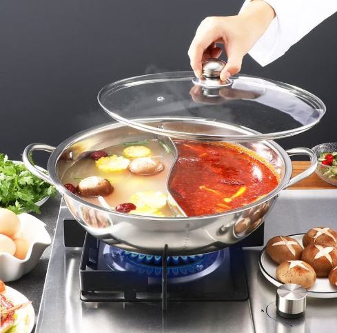 - Nồi lẩu hai ngăn bằng inox