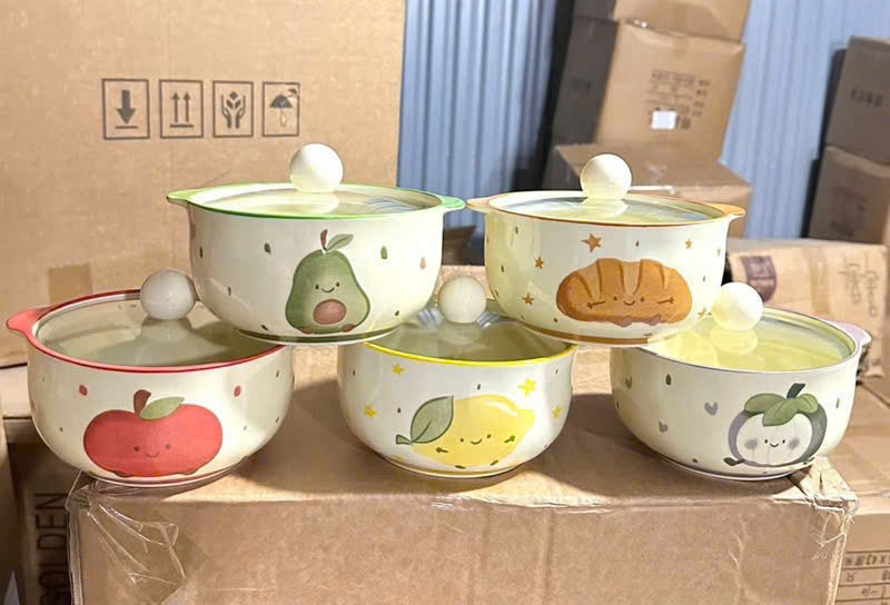 NỒI SỨ HOẠ TIẾT KÈM NẮP THUỶ TINH