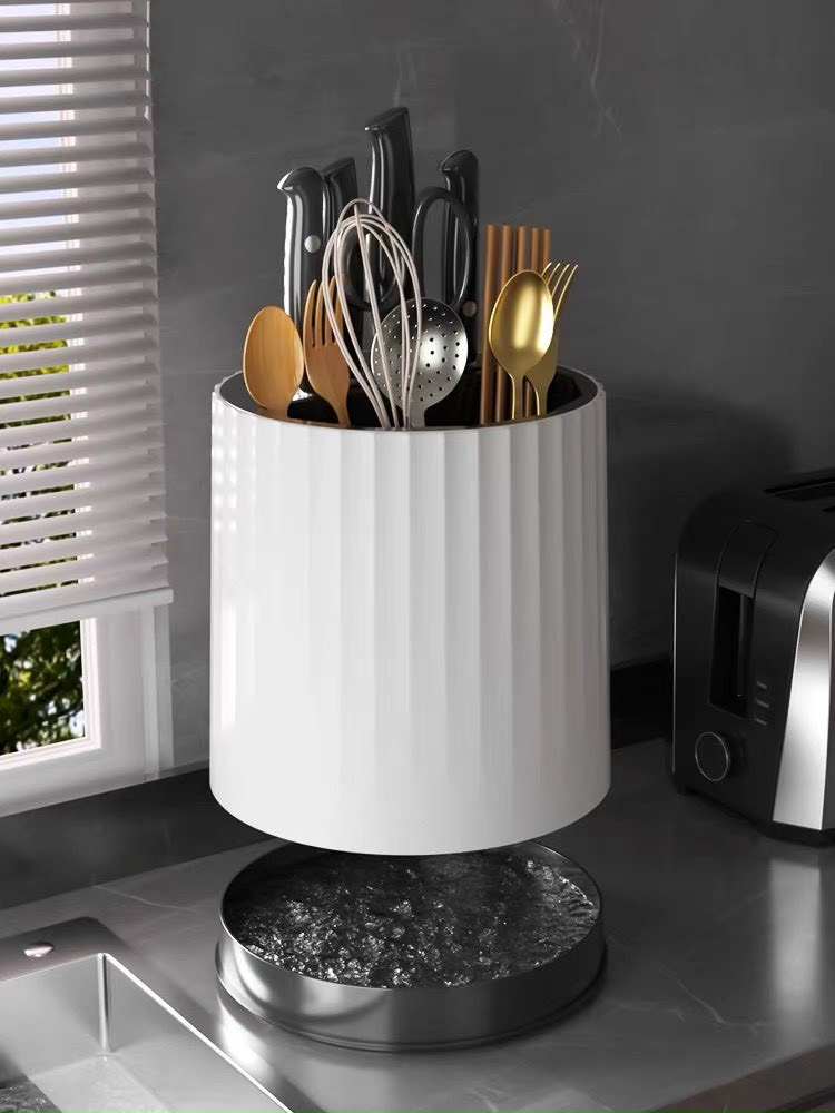 Ống để đũa thìa dao kéo HÌNH TRÒN xoay 360 có khay hứng nước - Chất liệu nhựa PP cao cấp - Ống Đựng Dụng Cụ Nhà Bếp Xoay