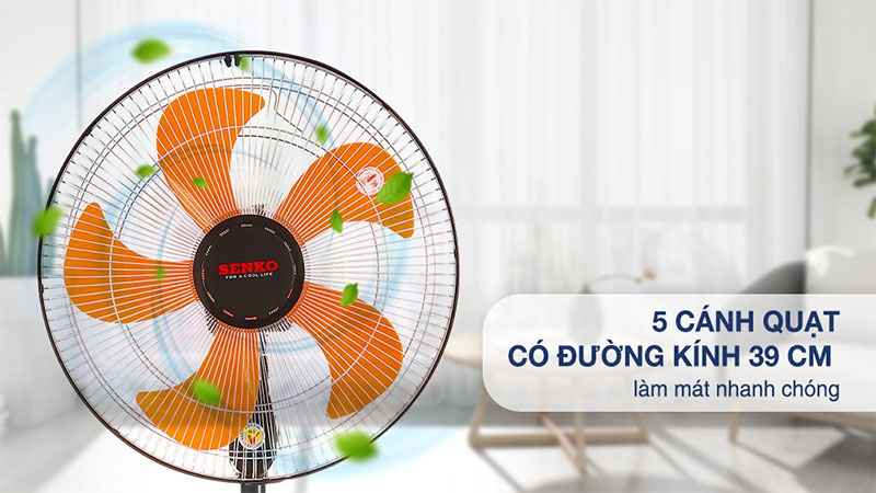 5 cánh quạt (39cm) tạo luồng gió rộng, làm mát nhanh toàn bộ không gian