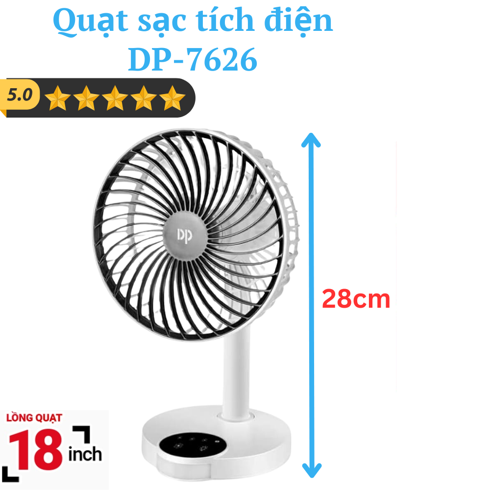 Mô Tả Sản Phẩm: QUẠT SẠC TÍCH ĐIỆN DP 7626**