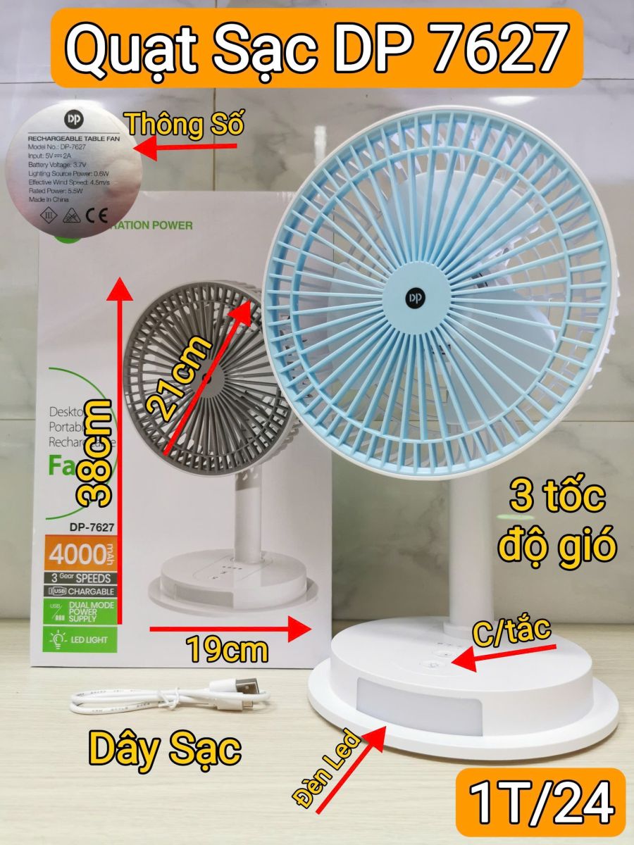 Sản phẩm: QUẠT SẠC TÍCH ĐIỆN DP 7627**