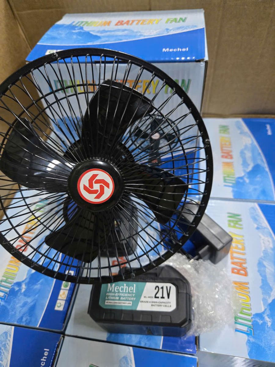 - Bộ sản phẩm gồm: 1 Thân quạt tích điện + 1 pin lithium 10Cell + 1 sạc 21V
