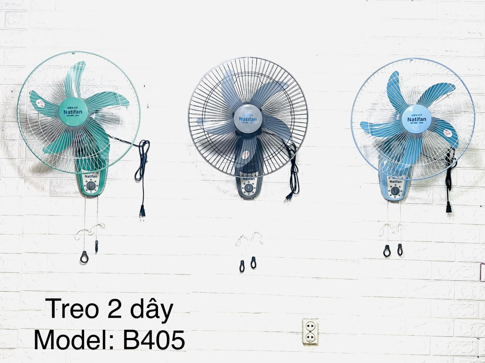 - Quạt treo tường 2 dây Natifan B405 sở hữu màu xám trang nhã, sải cánh là 400mm cùng 5 cánh quạt nhỏ quay với tốc độ nhanh làm mát tốt hơn.