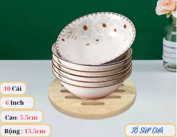 • TÔ SỨ LOE HOA DỪA NÂU SIZE 6 (15CM)