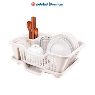 Rổ úp bát tiện ích Việt Nhật 3535, giá úp chén đũa 1 tầng tặng kèm khay hứng cao cấp, tiện dụng