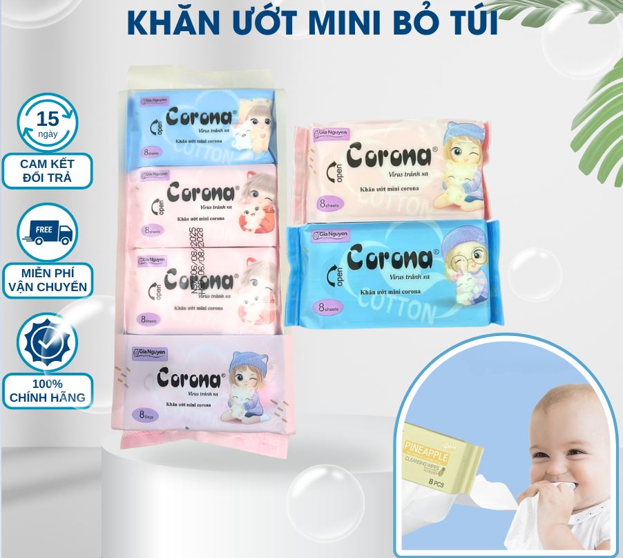• SET 8 GÓI KHĂN ƯỚT BỎ TÚI CORONA