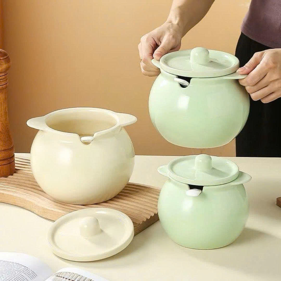 HỦ ĐỰNG MỠ SỨ CÓ TAI CẦM KÈM MUỖNG 1400ML (T18)