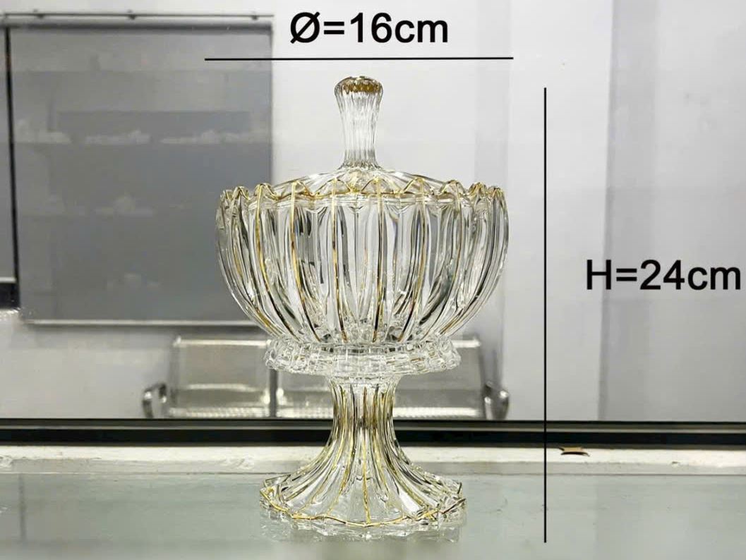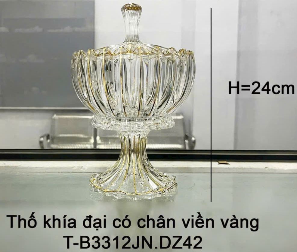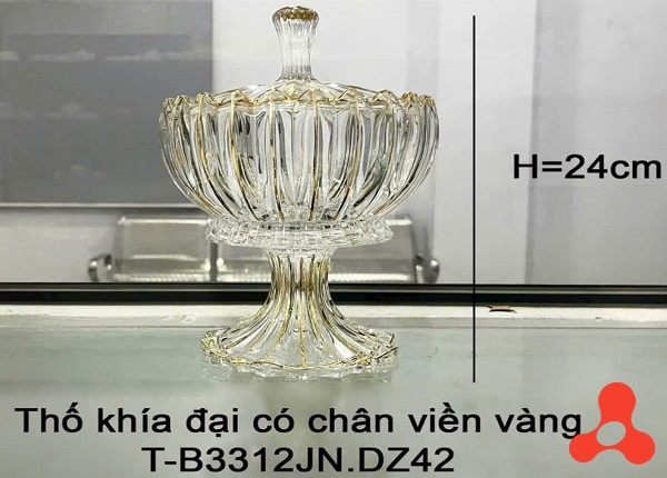 THỐ THUỶ TINH KHÍA SỌC VIỀN VÀNG CÓ CHÂN TB3312JNZD42