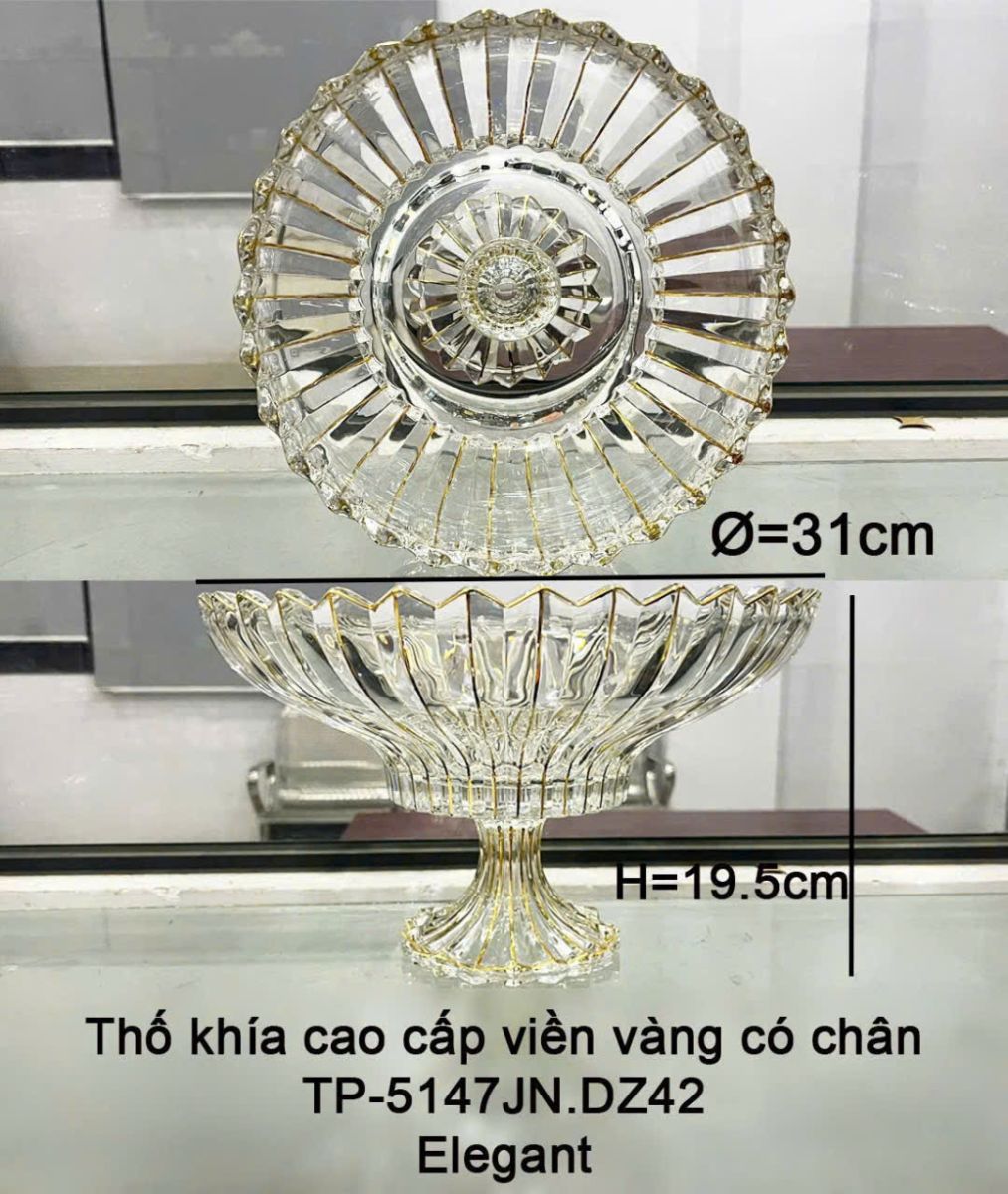 THỐ THUỶ TINH KHÍA SỌC VIỀN VÀNG CÓ CHÂN TP5147JNZD42