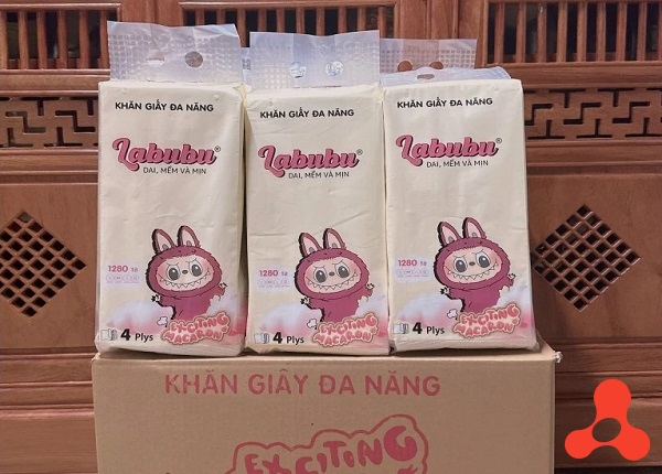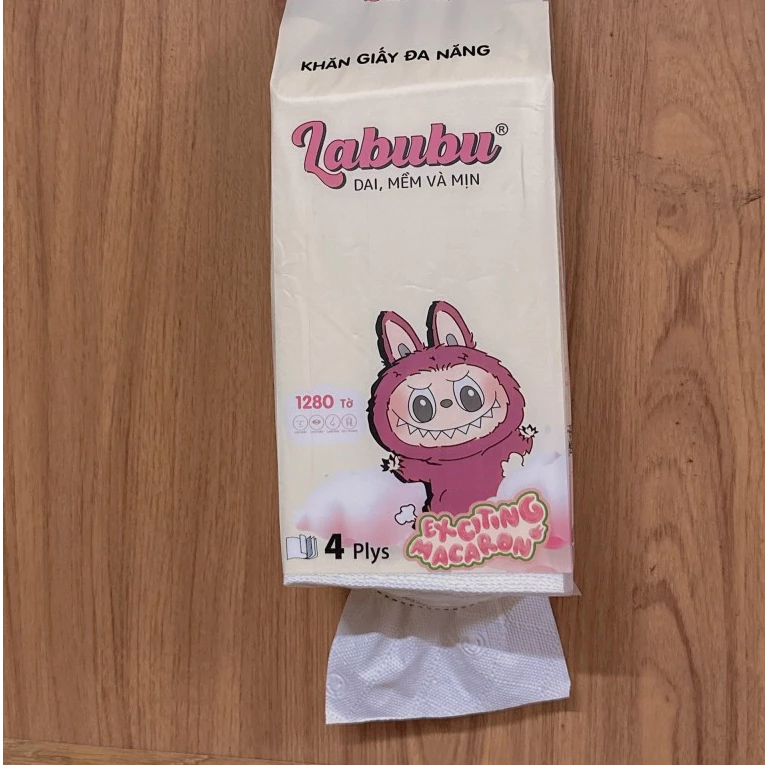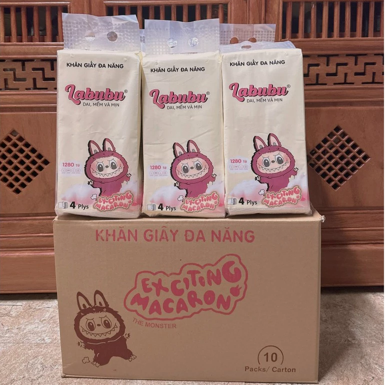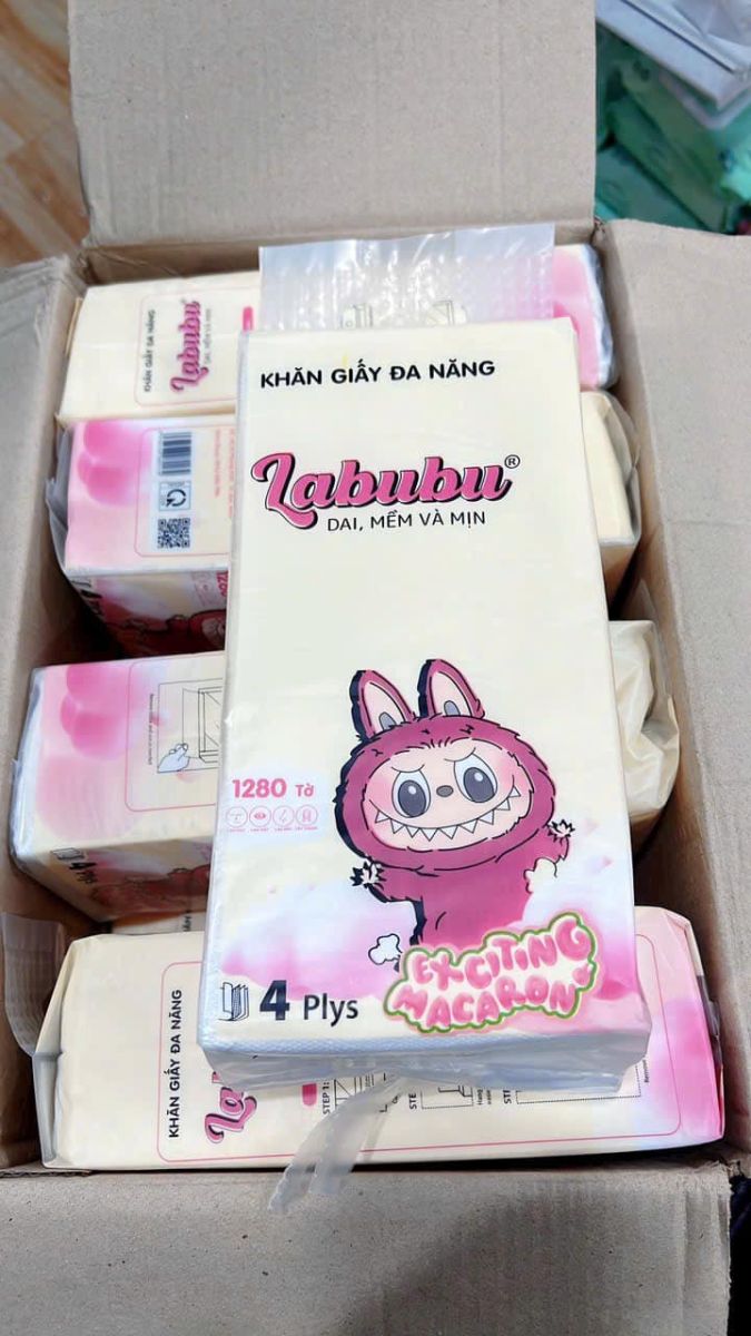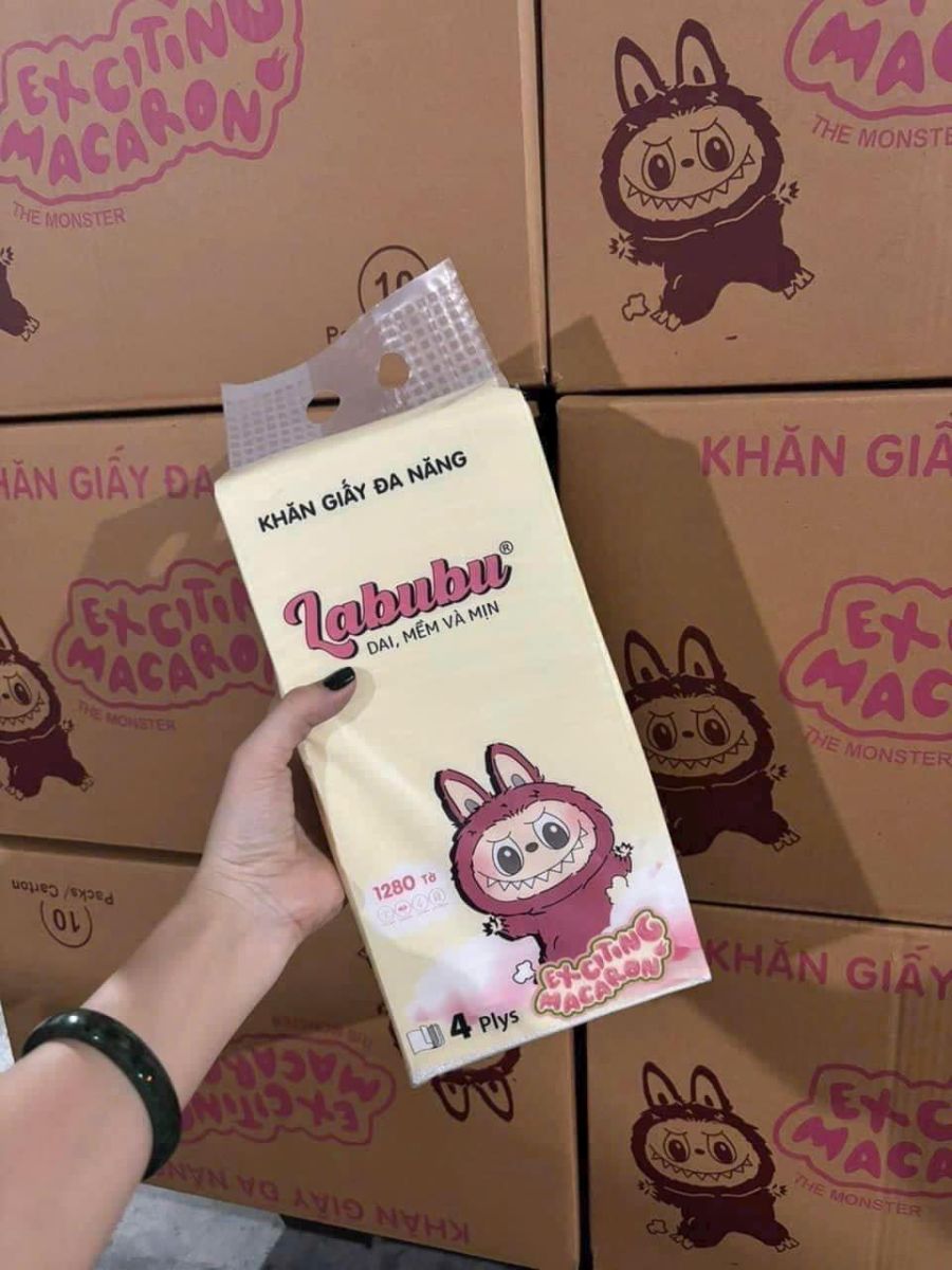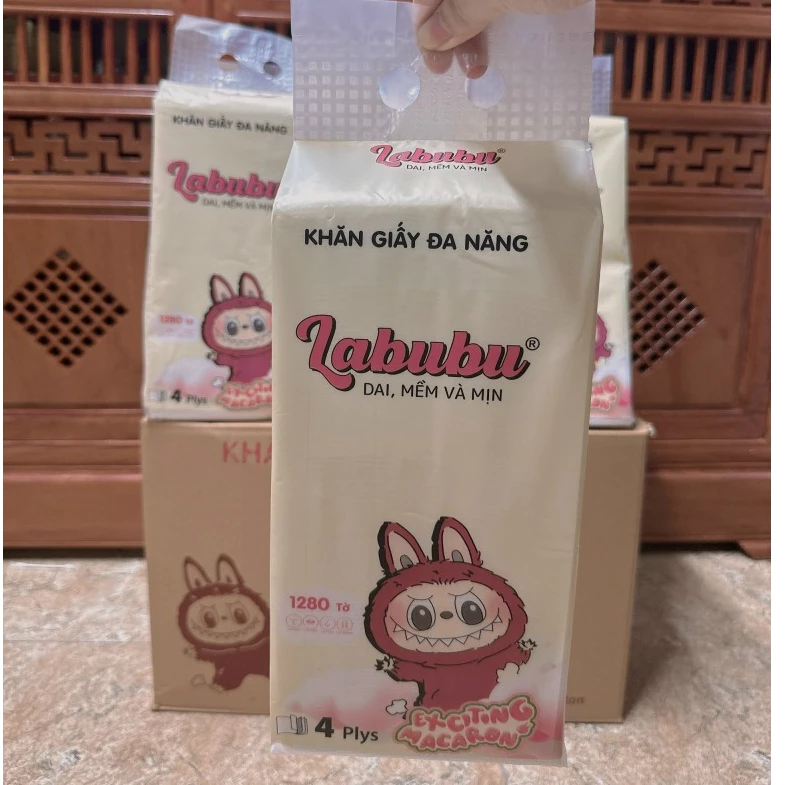 Thùng 10 Bịch Giấy Rút Treo Tường LABUBU 1280 Tờ - 4 Lớp Cao Cấp,Khăn Giấy Rút Dai Mịn Và Mềm Tặng Kèm Móc Treo