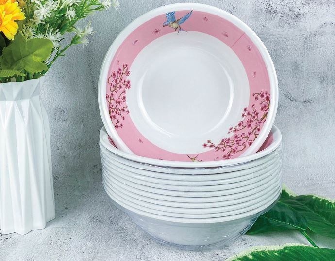 TÔ NHỰA LOE MICA HOẠ TIẾT NHIỀU HOA SIZE 6 (T504)