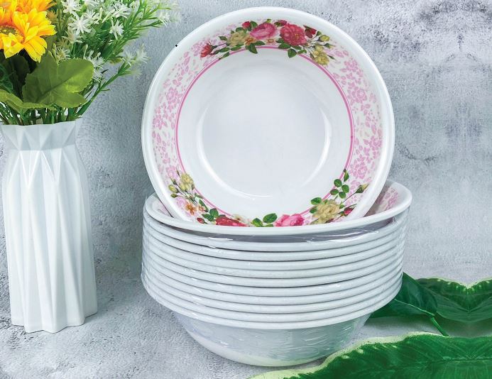 TÔ NHỰA LOE MICA HOẠ TIẾT NHIỀU HOA SIZE 8 (T240)