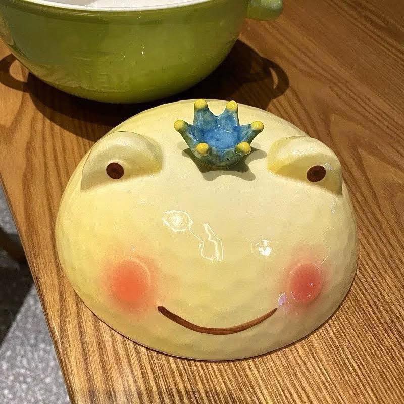 Bát đĩa sứ Decor, Tô ăn mì, Chảo béo ăn mì có tay cầm, Bát tô sứ kèm nắp kiểu dáng hình con ếch dễ thương