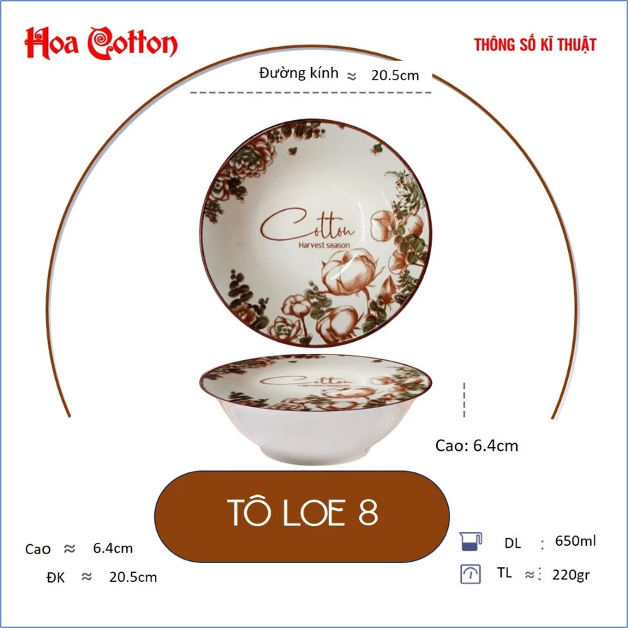 TÔ SỨ LOE HOA CỔ COTTON SIZE 8 - 20CM (T50)