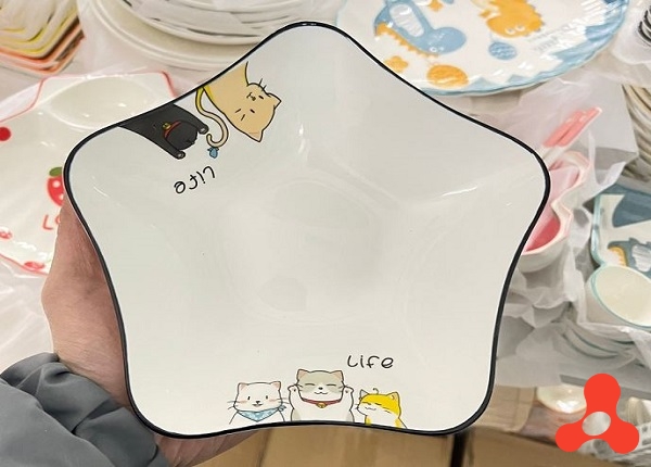TÔ SỨ NGÔI SAO VIỀN ĐEN HOẠ TIẾT HÌNH MÈO