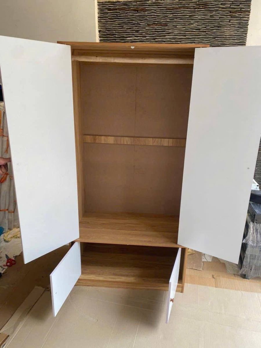 Phân ngăn hợp lý: treo quần áo + kệ xếp đồ