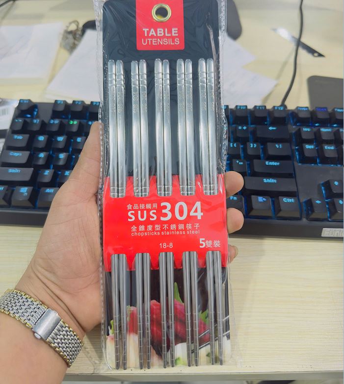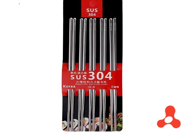 VỈ 5 ĐÔI ĐŨA INOX 304 CHỐNG TRƯỢT HÀN QUỐC CAO CẤP (T300)