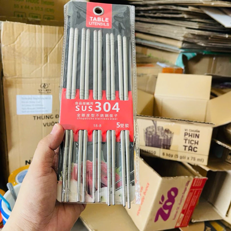 Vỉ 5 đôi đũa inox 304 chống trượt kiểu Hàn Quốc là lựa chọn hoàn hảo cho gia đình hiện đại. Đũa được làm từ inox 304 cao cấp, không gỉ sét, an toàn cho sức khỏe và sử dụng lâu dài.