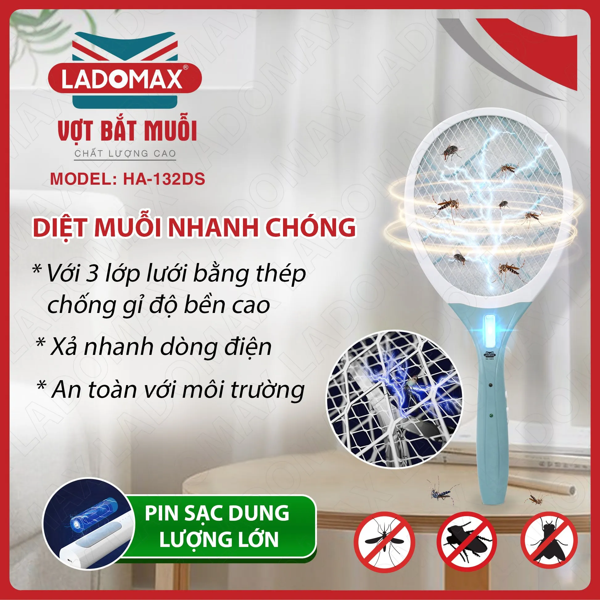 VỢT MUỖI CAO CẤP LADOMAX HA- 132DS